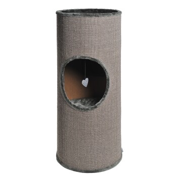 Die Kratztonne im Überblick: robuste Kratztonne mit Spielherz und gepolsterten Liegeflächen zum Ausruhen, Schlafen und Spielen für kleine bis große Katzen geeignet rundum verklebter Sisalteppich bietet eine große Kratzfläche und lenkt das Kratzbedürfnis von Möbeln auf das Kratzelement um mit Geheimfach an der Rückseite zum Verstauen von z.B. Lieblingsspielzeug und Katzenminze keine Montage notwendig Material: Sisalteppich, Plüsch, Pappe u. Holz Farbe: Grau Maße (BxTxH): ca. 42x42x100cm