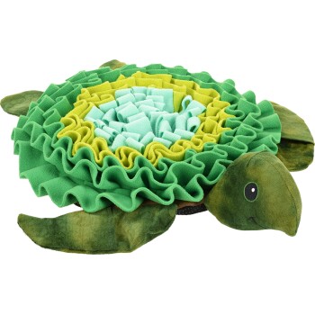 Die AniOne Schnüffelmatte für große Hunde ist perfekt, um die Sinne deines Hundes zu fördern. Diese große, runde Matte bietet eine spannende Möglichkeit, die Jagd- und Erkundungssinne deines Vierbeiners zu trainieren. Dein Hund kann die versteckten Leckerlies mithilfe von Nase, Schnauze und Pfoten aufspüren. Die Schnüffelmatte ist ideal für Anfänger mit Schwierigkeitsgrad 1 und bietet stundenlangen Spaß durch integrierte Geräuschelemente wie Raschelfolie und einen Squeaker im Kopf der Schildkröte. Die Matte lässt sich mit Snacks befüllen und kann auch für die tägliche Trockenfuttervergabe genutzt werden, um das Schlingen zu verhindern. Der Anti-Rutsch-Boden sorgt für sicheren Halt. Die AniOne Schnüffelmatte besteht aus Polyester und ist leicht per Handwäsche zu reinigen. Mit den Maßen von ca. 53 x 46 x 9 cm ist sie ideal für große Hunde. Eine Gebrauchsanweisung mit wertvollen Tipps und Tricks für ein optimales Training ist ebenfalls enthalten. Vorteile im Überblick Fördert die Sinne deines Hundes Schwierigkeitsgrad 1 für Anfänger Mit Geräuschen für zusätzlichen Spaß Verhindert das Schlingen Anti-Rutsch-Beschichtung für sicheren Halt Handwäsche für einfache Reinigung Inklusive Gebrauchsanweisung