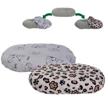 Einfach den Bezug wechseln und schon hat dein Vierbeiner ein frisches, neues Lieblingsplätzchen. Der Bezug aus Polyester bietet langlebigen Komfort und ist ideal für alle, die gerne mal das Design wechseln möchten. Die Reinigung der Bezüge ist kinderleicht. Waschbar bei 30°C, bleiben sie hygienisch und sauber, während dein Hund sich entspannt. Die Bezüge sind perfekt für einen schnellen, unkomplizierten Look-Wechsel und bieten deinem Hund eine bequeme und stilvolle Liegefläche. Mach deinem treuen Begleiter eine Freude und sorge für eine gemütliche Wohlfühlatmosphäre. Vorteile im Überblick Zwei stylische Motive: Hunde- und Tatzenprint Einfacher Wechsel für frischen Look Pflegeleicht durch Waschen bei 30°C Hochwertiges Material: Polyester Langlebig und komfortabel Perfekt für Designwechsel