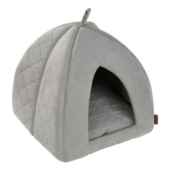 Die kuschelige, luxuriöse MORE Höhle Diamond ist der ideale Rückzugsort zum Verstecken, Spielen und Schlafen. Die graue Kuschelhöhle begeistert durch dein schlichtes, elegantes Design welches sich optimal in verschiedenste Einrichtungsstile einfügt. Der Außenbezug und eine Kissenseite besitzen eine in Diamantform gesteppte, weiche Velouroptik.Praktisch ist das herausnehmbare Wendekissen. Durch die verschiedenen Stoffe des Liegekissens kannst du individuell entscheiden, welche Oberfläche dein Liebling und du bevorzugen – die Seite mit Steppung oder das kuschelweiche, hellgraue Langhaarplüsch.Der Kissenbezug ist abnehmbar und bei Verschmutzungen bei 30°C maschinenwaschbar. Die Höhle kann mit der Hand gereinigt werden.Die mit Noppen besetzte Unterseite gibt der Höhle Halt, so dass es auf glatten Böden nicht verrutschen kann. Maße: 50x50x50cm Besonderheiten der MORE Höhle Diamond: Bietet viel Platz für dein Kätzchen und kleine Hunde Der praktische Tragegriff erleichtert das Aufheben und Bewegen Zeitlos und hochwertig Ganzjährig nutzbar Kuschelweich Herausnehmbares Wendekissen Abnehmbarer Kissenbezug Der Kissenbezug kann bei 30°C gewaschen werden Anti-Rutsch-Unterseite Material Kissenbezug: PolyesterReinigungsempfehlung: Das Kissenbezug ist bei 30°C waschbar, die Höhle kann per Handwäsche gereinigt werden.