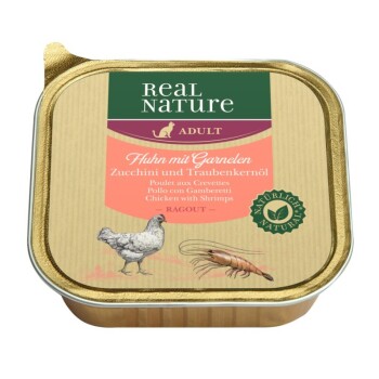 REAL NATURE Original Nassfutter für Katzen, Adult, Garnele und Huhn mit Zucchini und Traubenkernöl 16×100 g